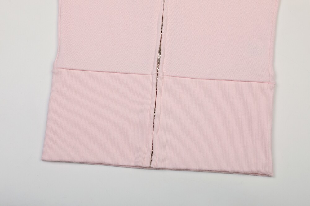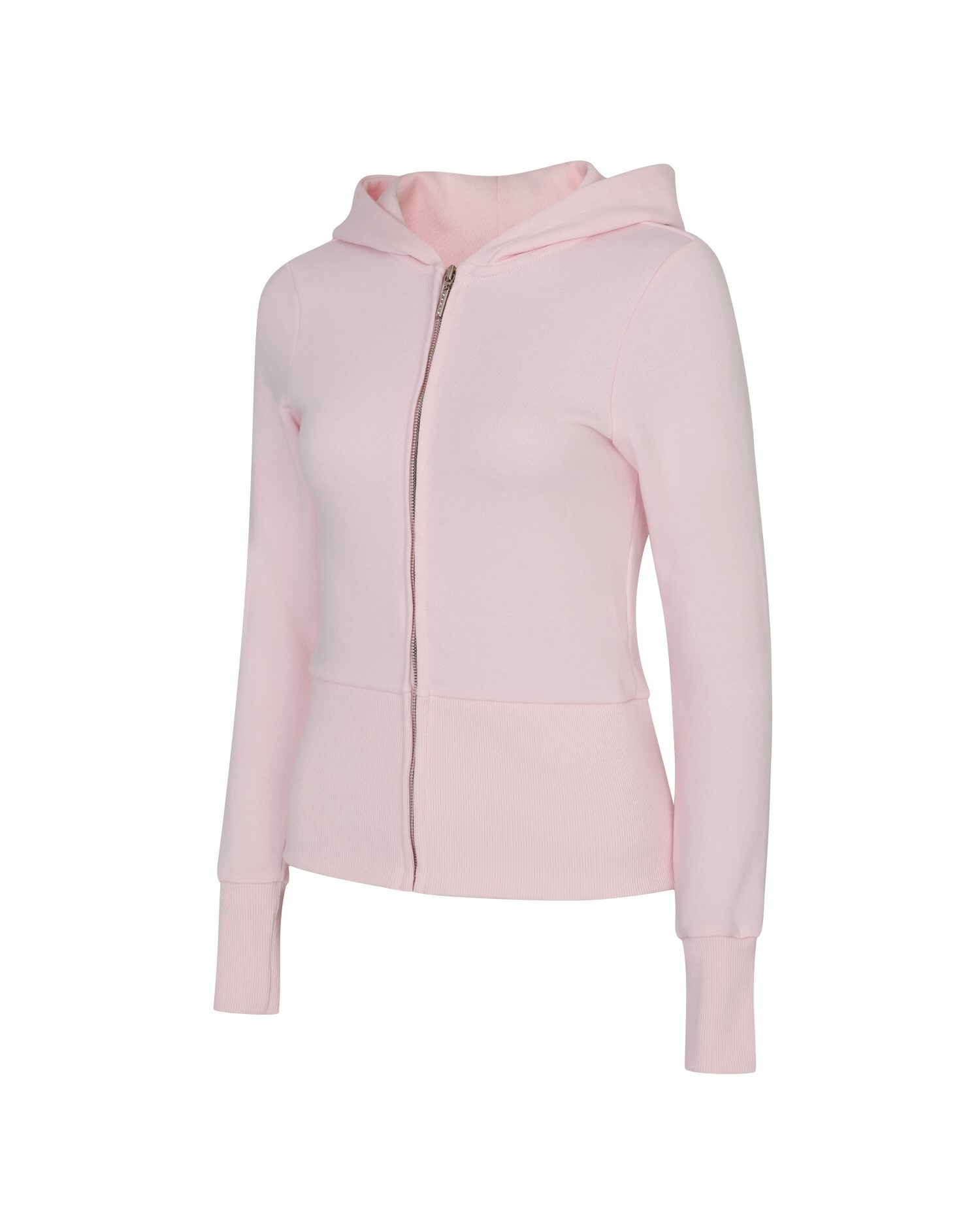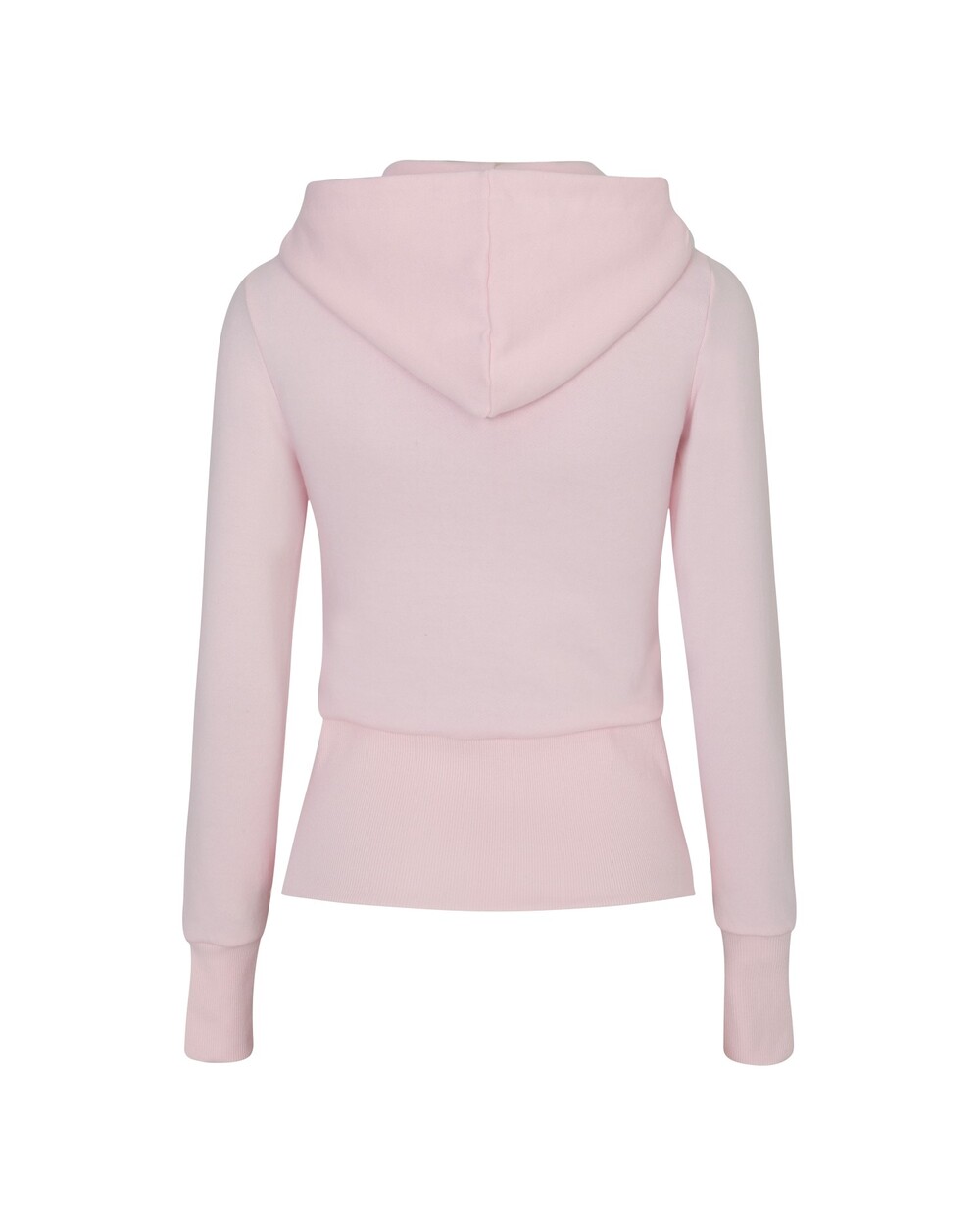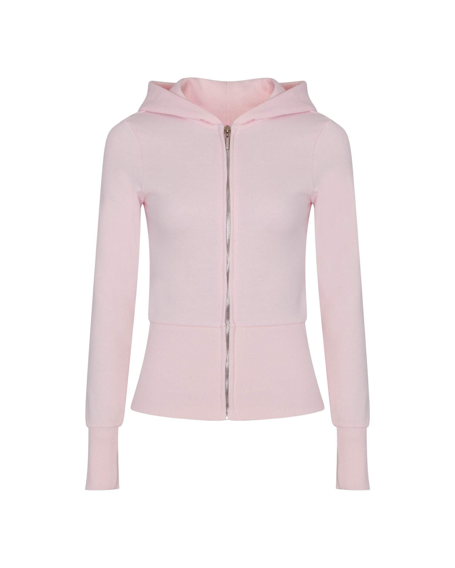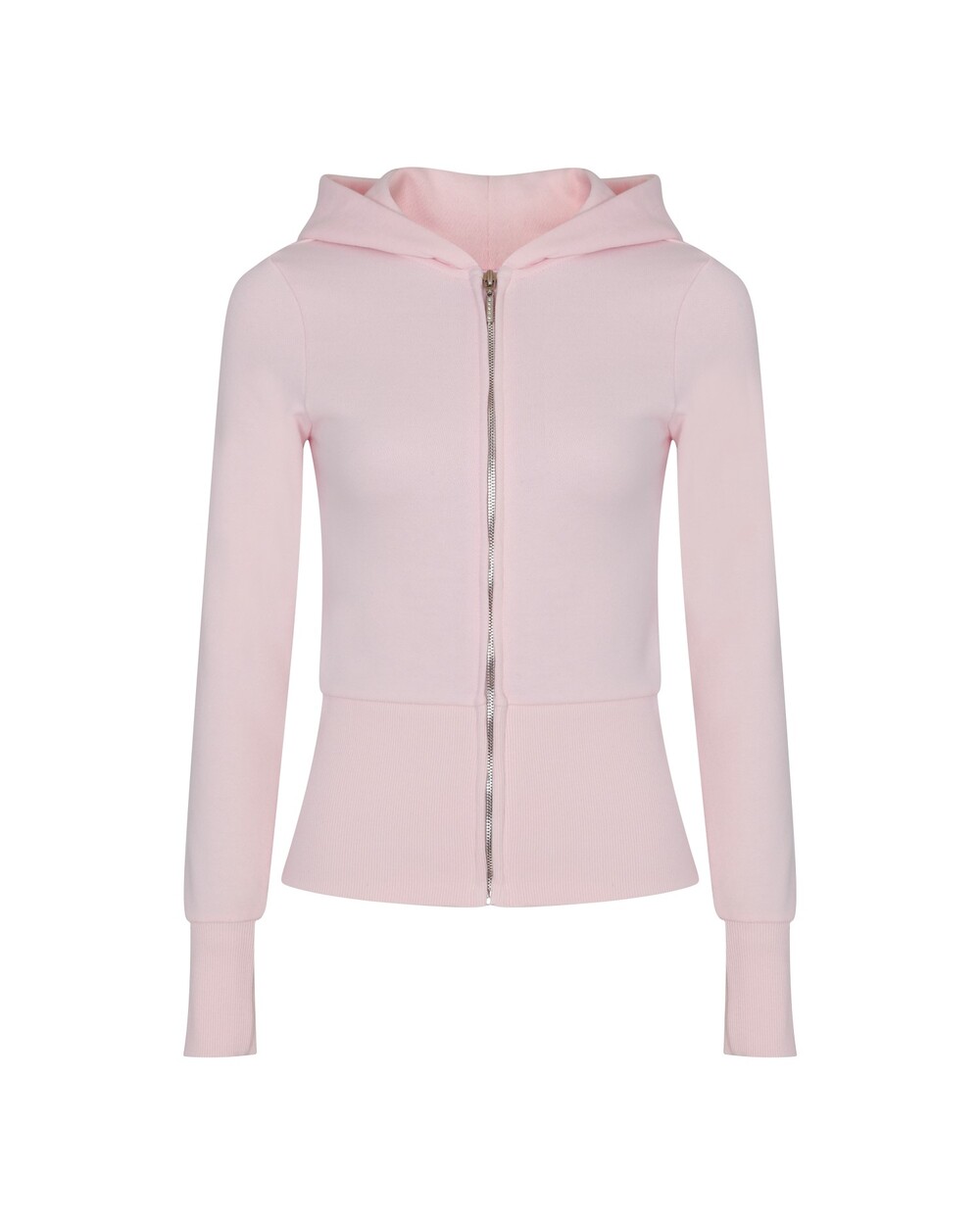 앞포켓을 배제한 심플한 디자인과 넓은 허리 립 디테일로 후드집업 본연의 라인을 세련되게 살리며, 길게 디자인된 소매 립이 여리여리한 실루엣을 연출합니다.