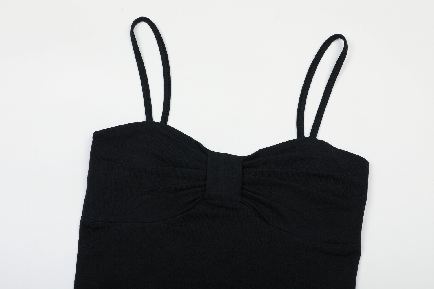 시그니처 아이템인 베이비 히메 슬리브리스와 동일한 핏으로 제작되어, 바스트 라인의 리본 디테일이 쁘띠한 매력을 더하며 이어지는 곡선 절개선이 바디를 입체적으로 표현해 로맨틱하면서도 슬림한 실루엣을 완성합니다.