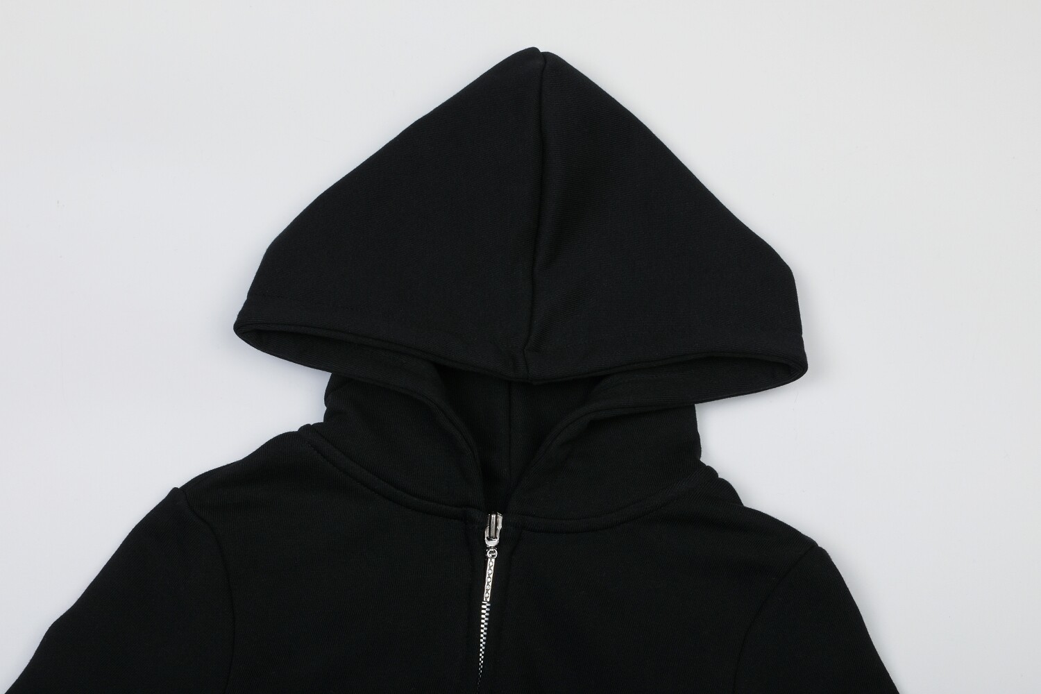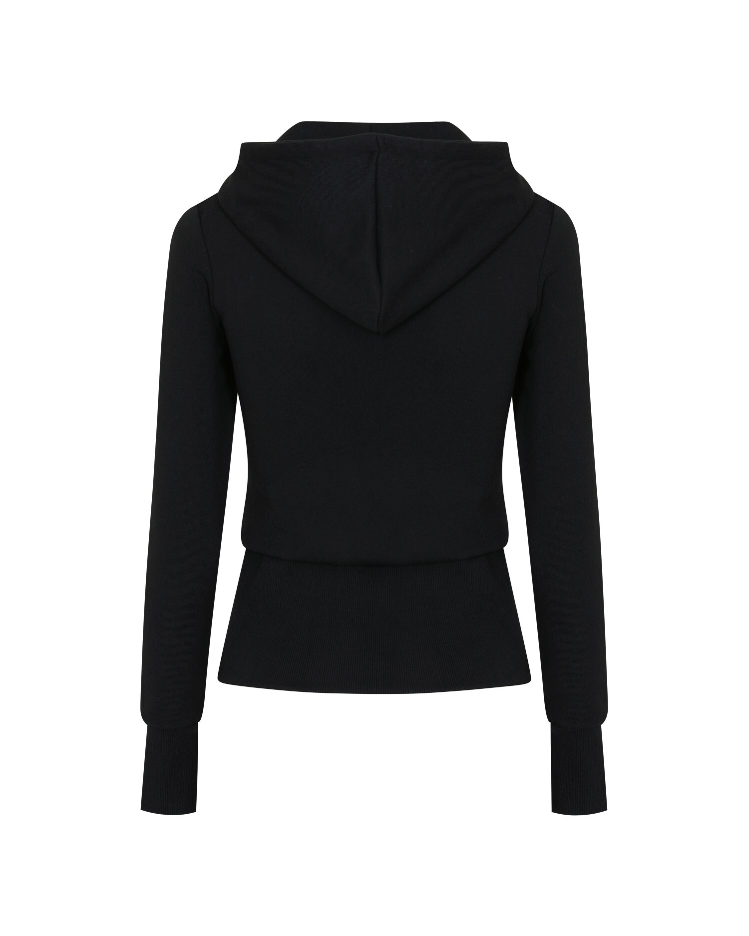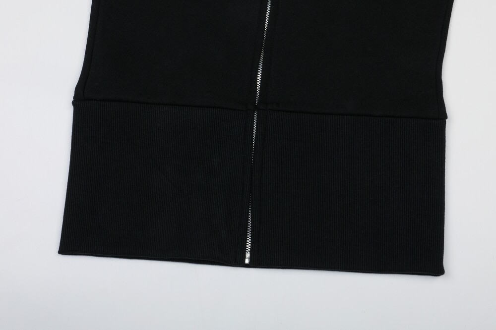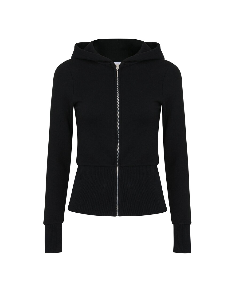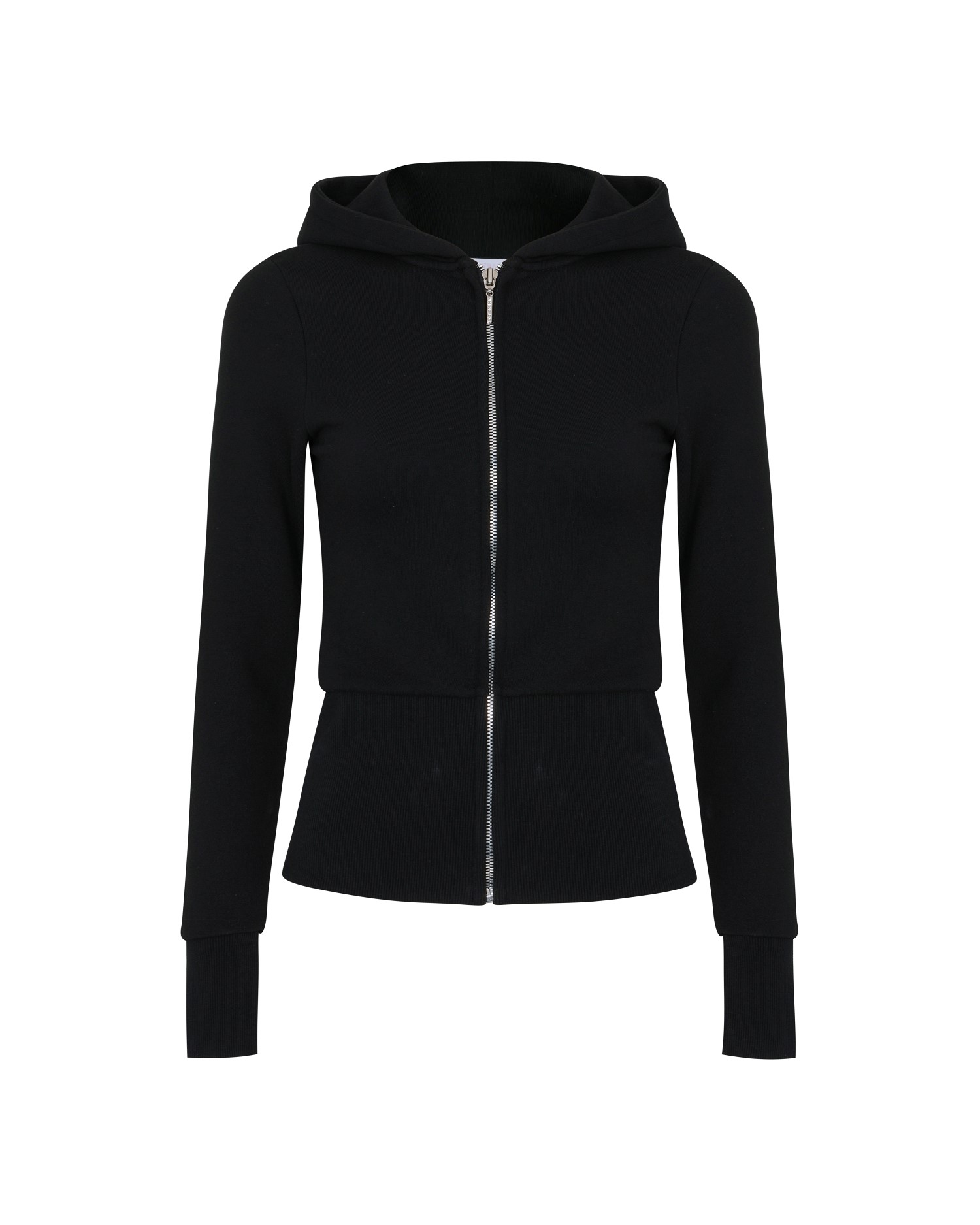 앞포켓을 배제한 심플한 디자인과 넓은 허리 립 디테일로 후드집업 본연의 라인을 세련되게 살리며, 길게 디자인된 소매 립이 여리여리한 실루엣을 연출합니다.