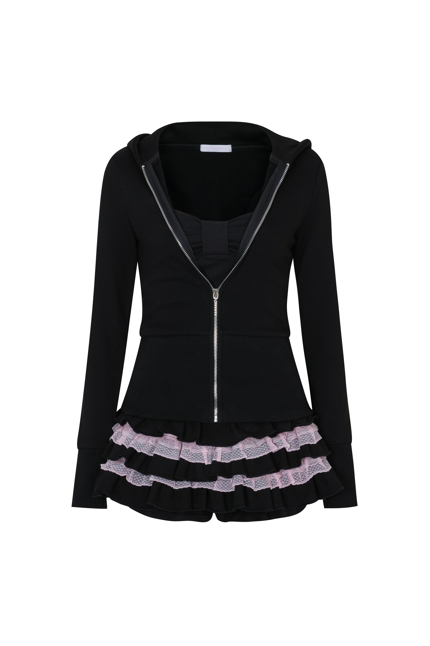 인형같은 매력이 돋보이는 블랙 컬러의 베이비 돌리 집업입니다.